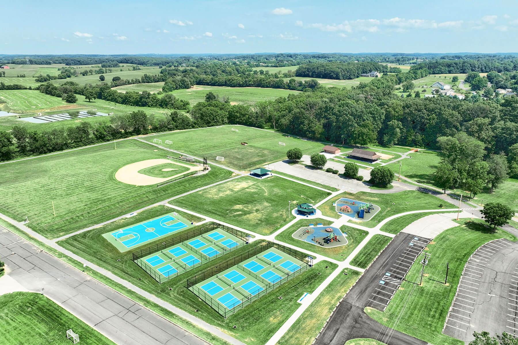 Located next door to Mayberry at Mason-Dixon Community is the newly renovated and constructed Littlestown Community Park.* Enjoy a variety of sports, fun playgrounds for the kids, pavilions for gatherings and more! Watch the aerial tour and see the amenities for yourself!